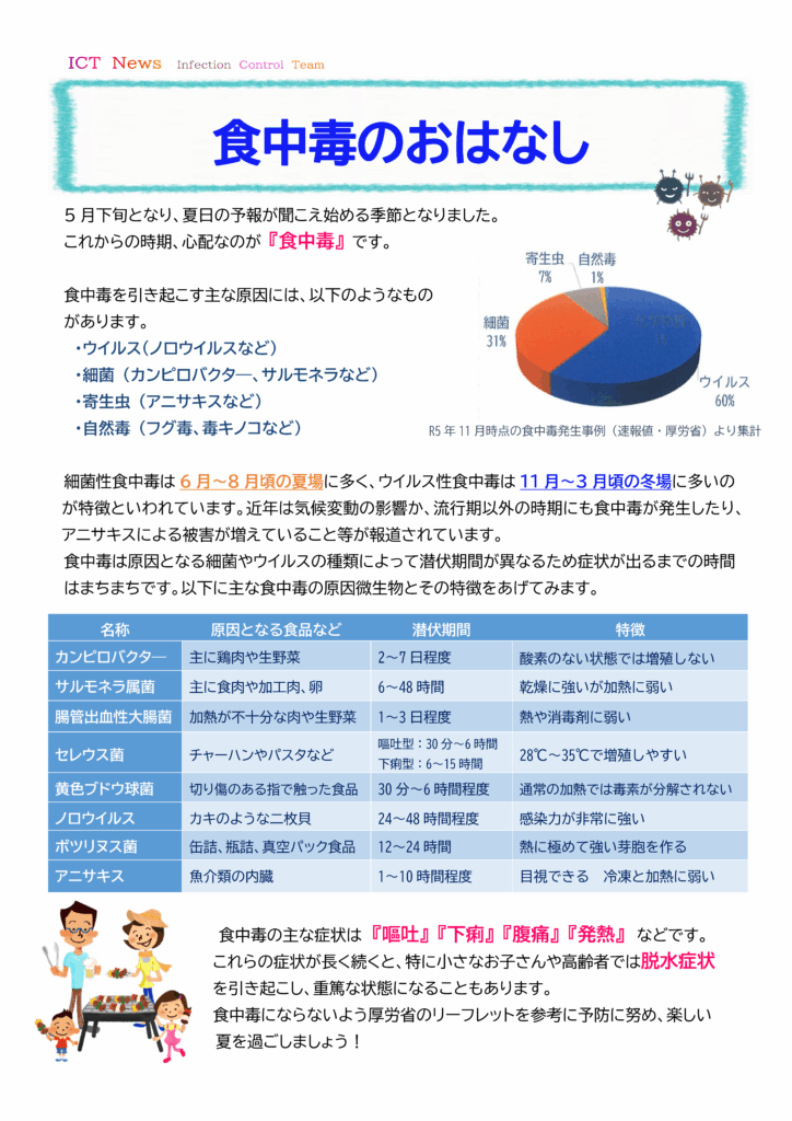 食中毒にならないよう厚生労働省のリーフレットを参考に予防に努め、楽しい夏を過ごしましょう!