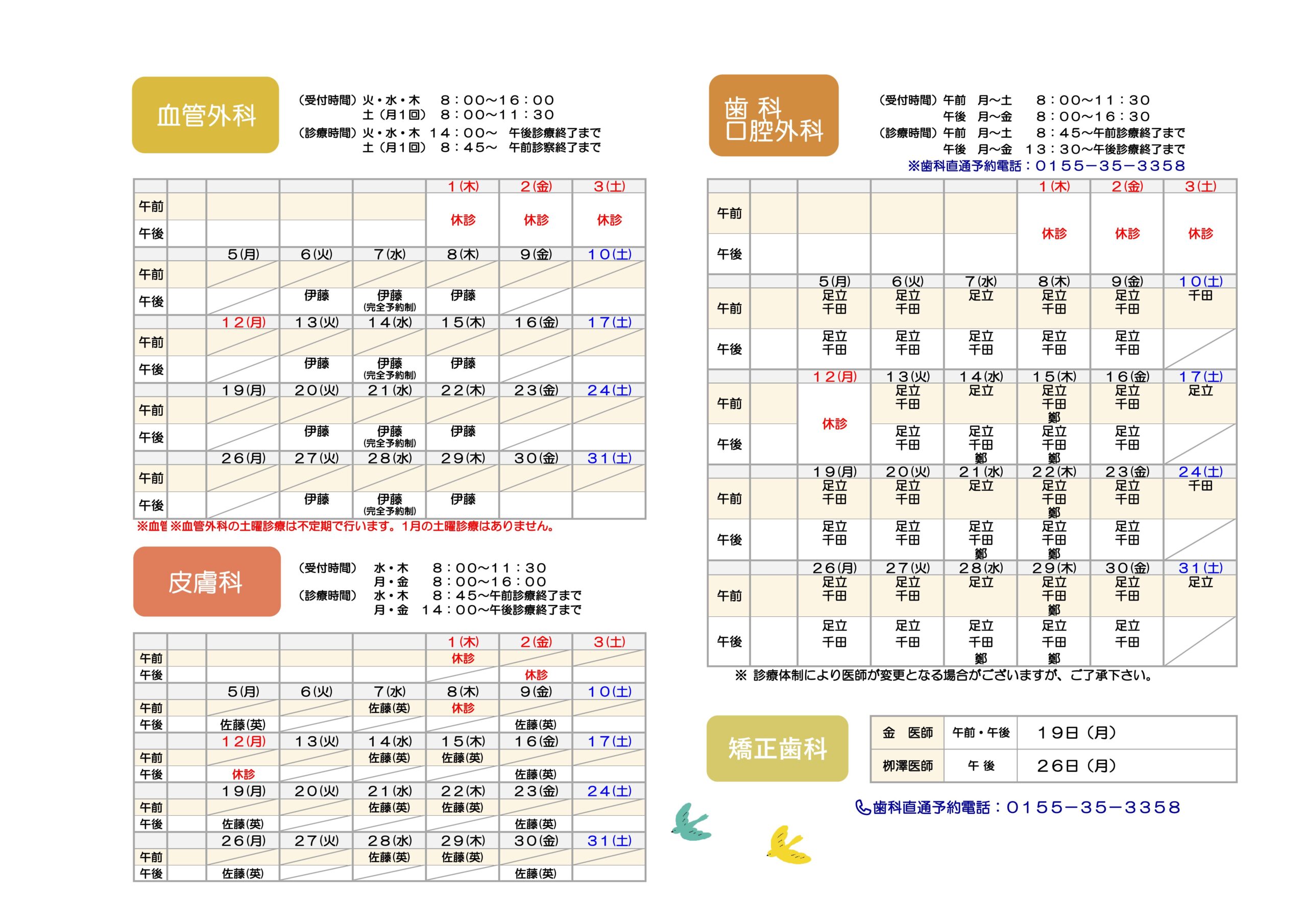 今月の外来診療体制